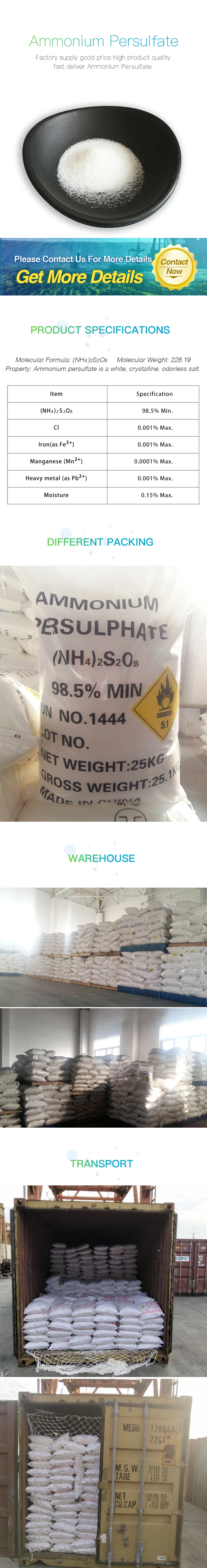 APS is a suitable initiator for the emulsion or solution polymerisation of acrylic monomers, vinyl acetate, vinyl chloride etc. For the emulsion polymerisation of styrene, acrylonitrile, butadiene etc. APS is also a kind of oxidizing agent: