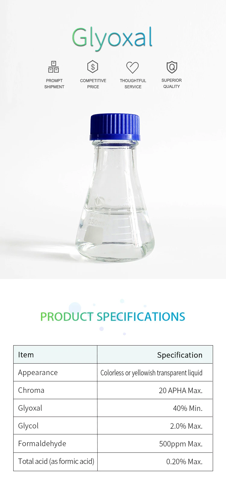 1. It can produce acetals with compounds containing hydroxyl, and is mainly used as raw materials for glyoxylic acid, M2D resin, imidazole and other products.