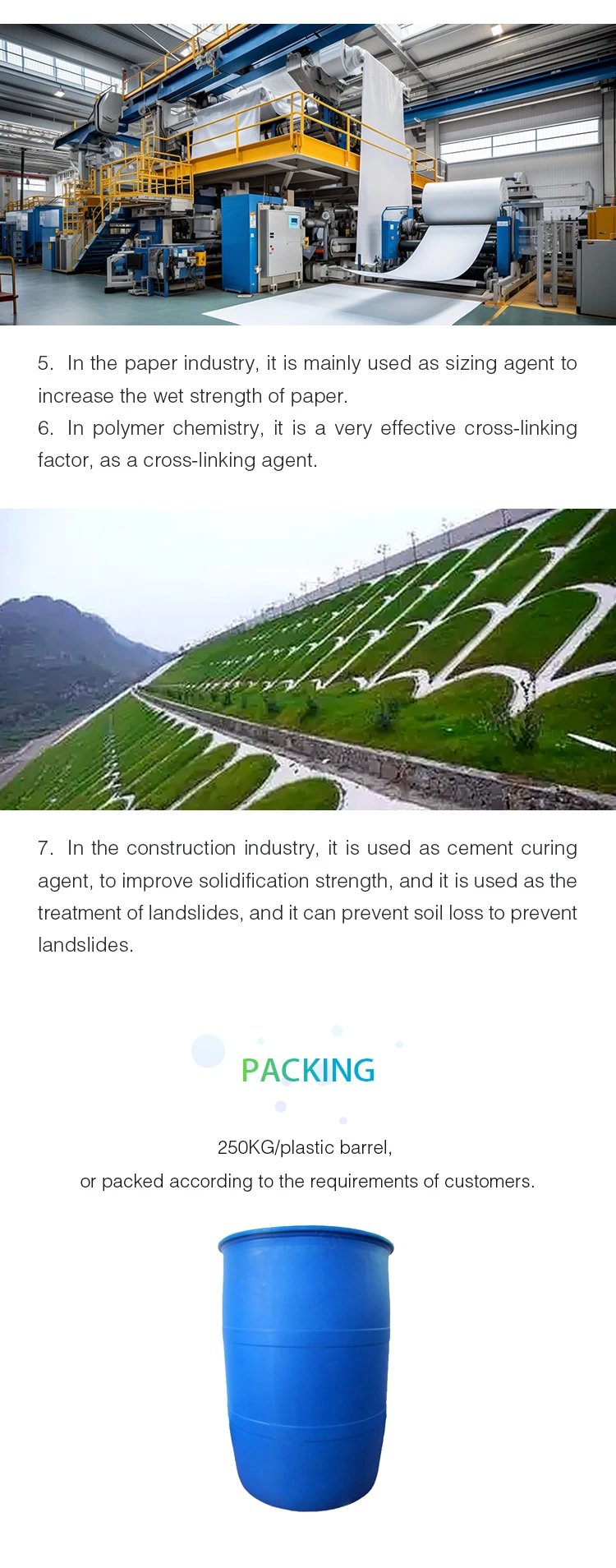 6. In the paper industry, it is mainly used as sizing agent to increase the wet strength of paper.