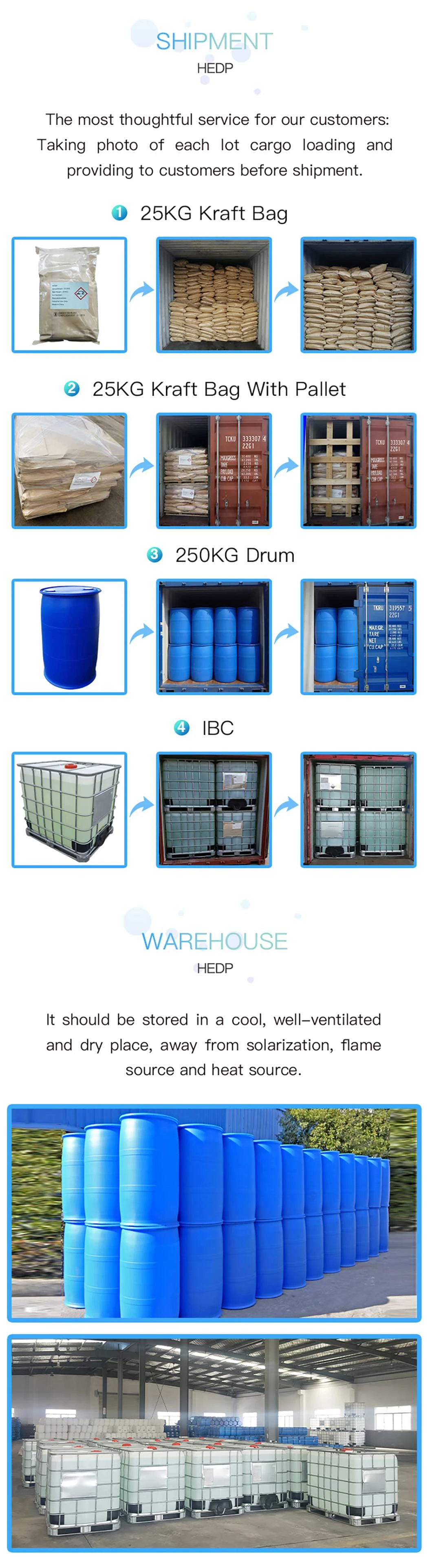 Usage:HEDP is used as scale and corrosion inhibition in circulating cool water system, oil