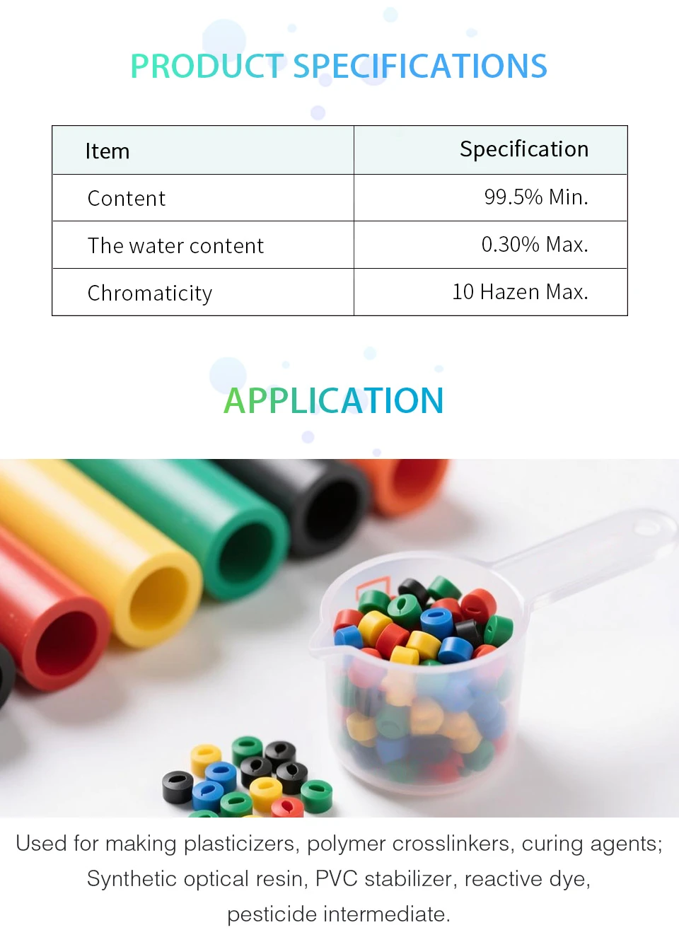 Usage:Used for making plasticizers, polymer crosslinkers, curing agents;Synthetic optical resin, PVC stabilizer, reactive dye, pesticide intermediate.