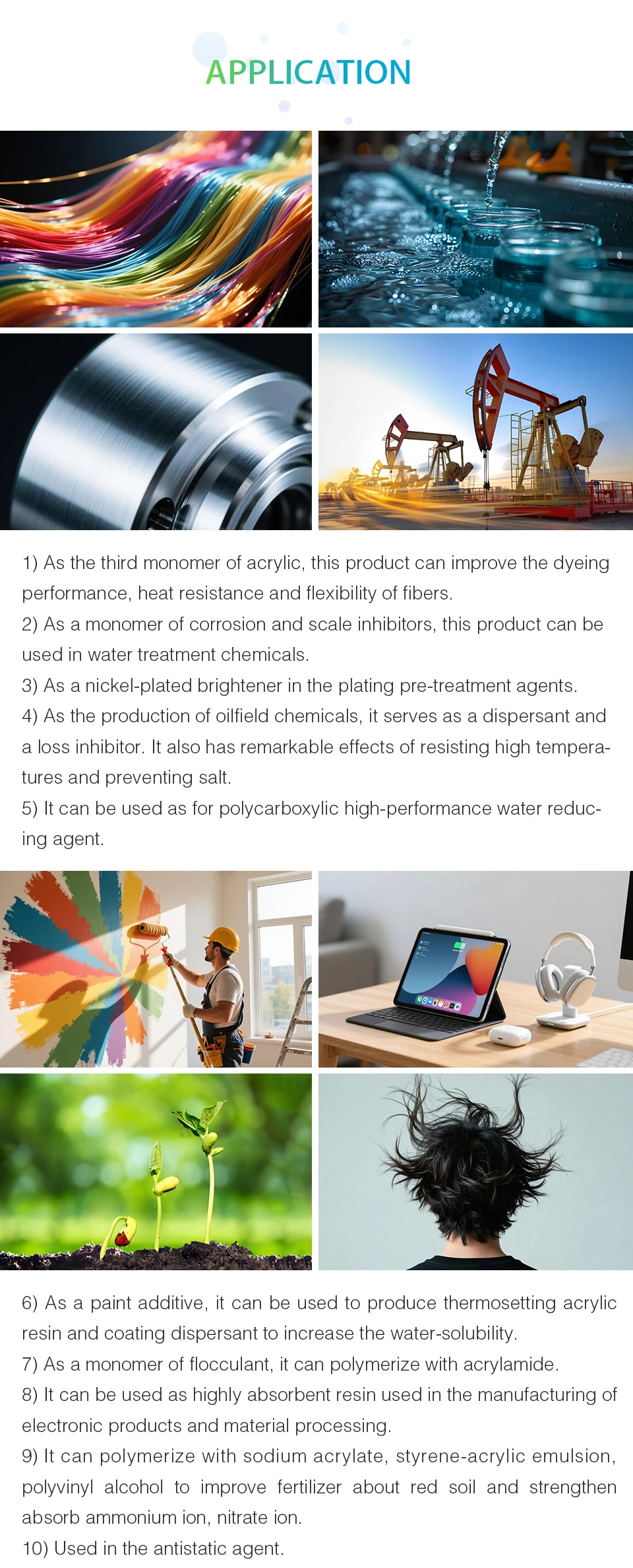 2) As a monomer of corrosion and scale inhibitors, this product can be used in water treatment chemicals.