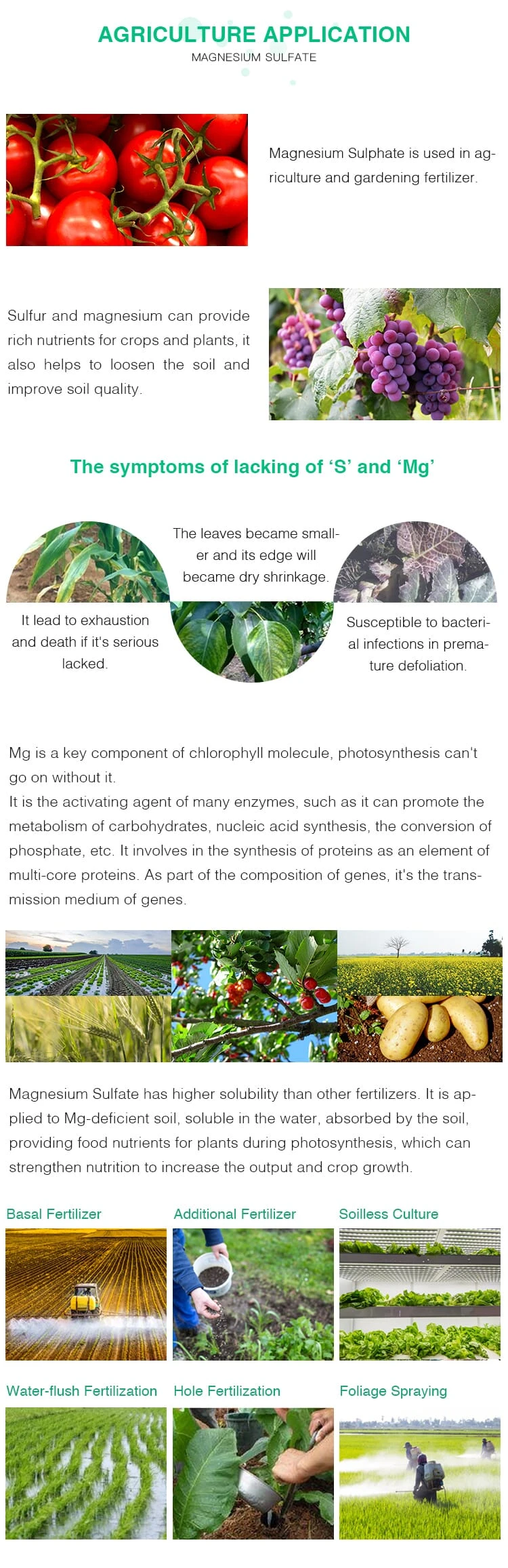 1. Can be directly used as base fertilizer, fertilizer and foliar fertilizer.