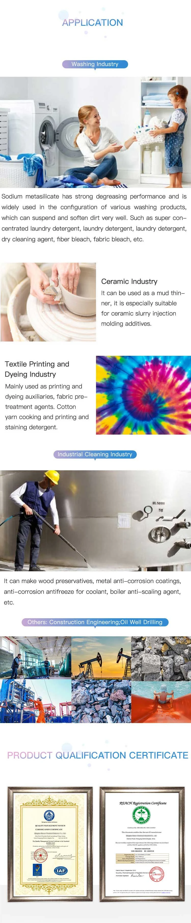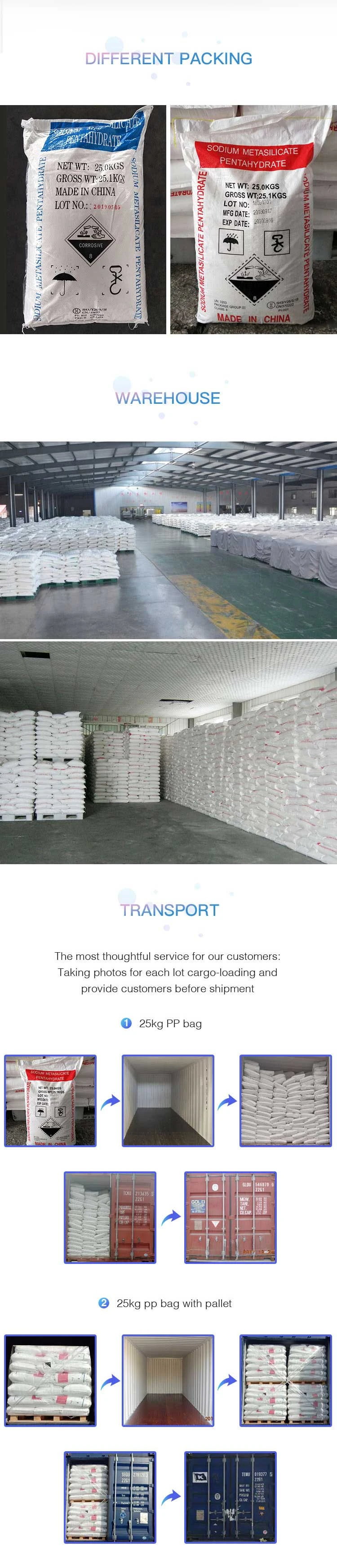 Pentahydrate Usage: It is mainly used in washing powder, metal cleaning agent, tableware washing and high efficiency auxiliaries. Used for cotton cooking. Used for old paper to remove ink, printing decontamination, vegetable oil recovery. It can also be used as a stabilizer for peroxide bleaching.