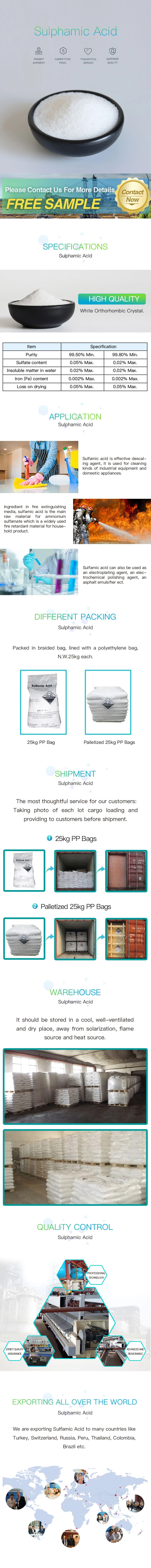 Usage:Metal parts cleaning, getting away oxidize surface. Slightly corrosive to metal, used to flush boiler, and sterilize bacterium in water. Bleach fiber, wood and paper. Remove nitrite in tobacco. Raw material for paint, dye stuff and PH test paper. Used as fire resistance of cotton fiber. Used as solidifying agent of resin. Raw material for pesticide intermediates, ramification of sulphamic acid.
