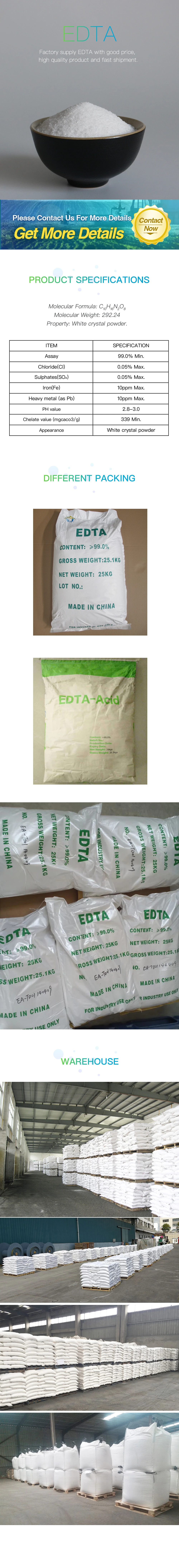 EDTA is an important complexing agent. It has a wide range of uses and can be used as a bleaching and fixing solution for the processing of color photosensitive materials, dyeing auxiliaries, fiber processing auxiliaries,cosmetic additives, blood anticoagulants, detergents, stabilizers, synthetic rubber polymerization initiators.