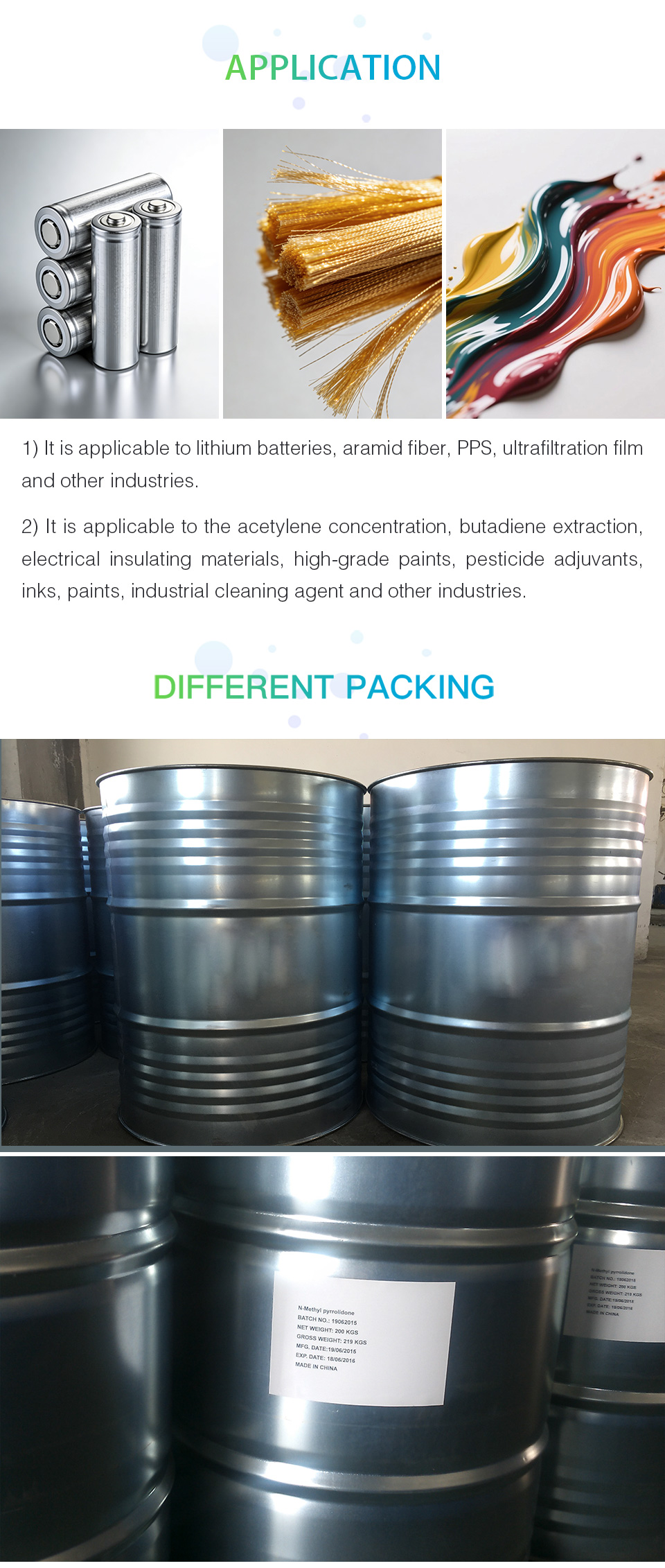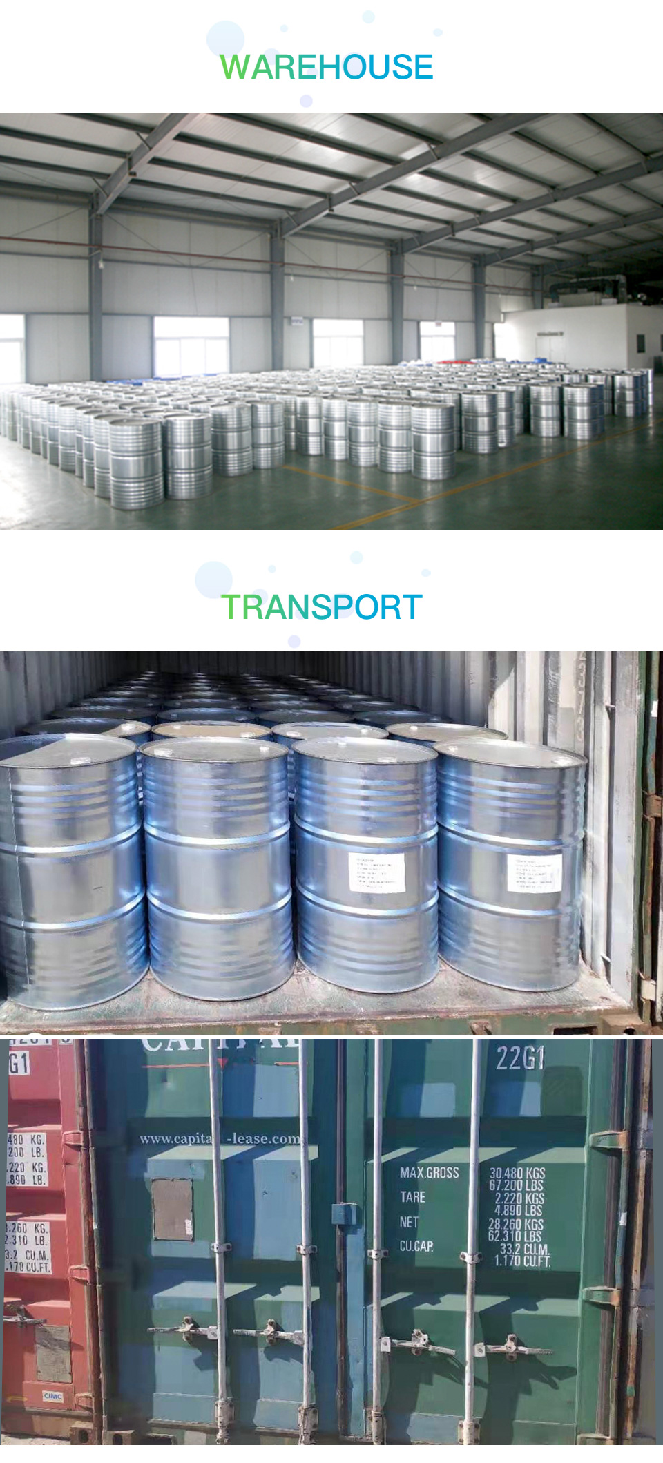 2. It is applicable to medical, pharmaceutical, veterinary solvents, intermediates and other industries.Galvanized buckets (net weight: 200KG),