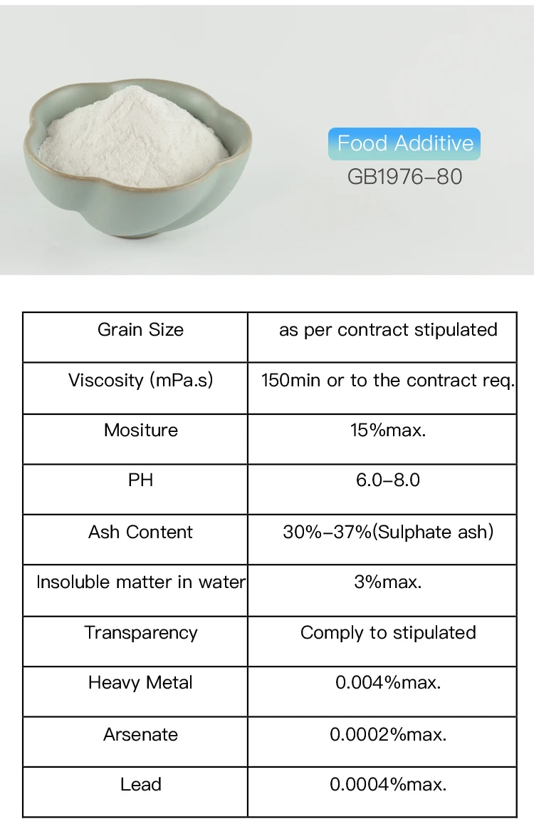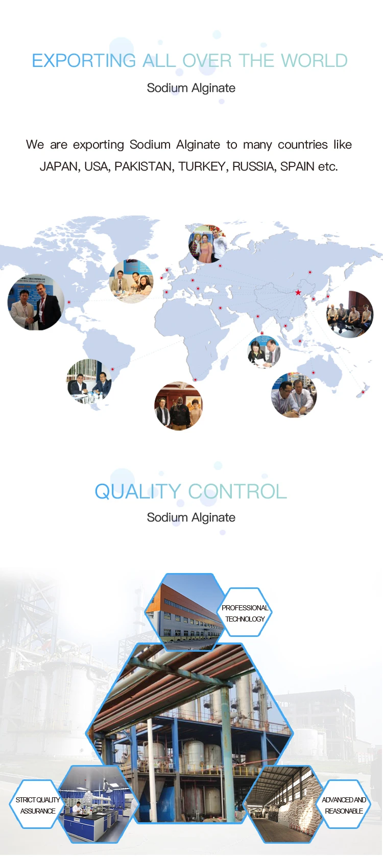 As additive in bread, algiante can increase the volume of products, make the read bright and loose,and not easily dried.Using it in the production of dried noodles, it will strengthen the noodle and increase the yield of the finished product.