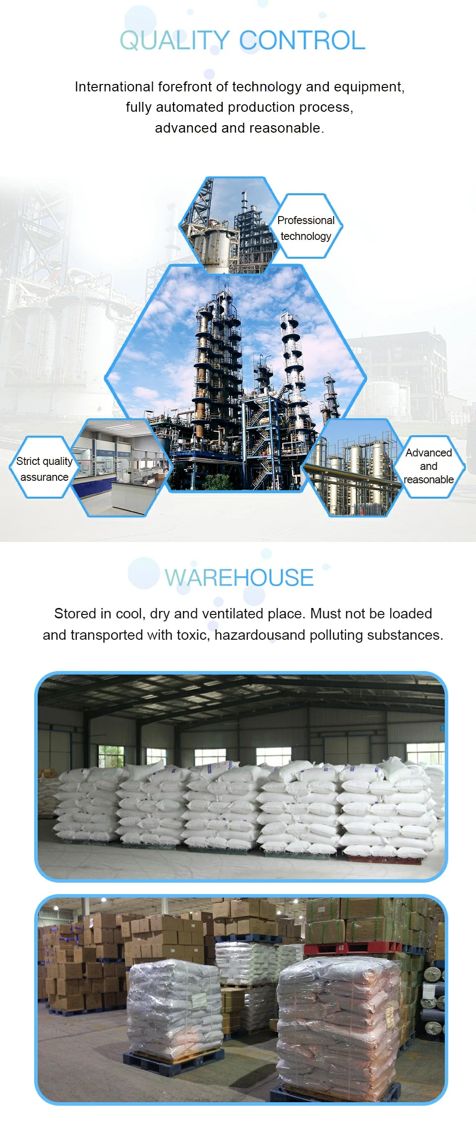 4. As feed additive can effectively inhibit mildew, extend the shelf life of feed, can also raise livestock appetite when combined with the other inorganic salts, increase milk production of dairy cows. Suitable for the use of various feed for its small volatility, high temperature resistance, animal adaptability.