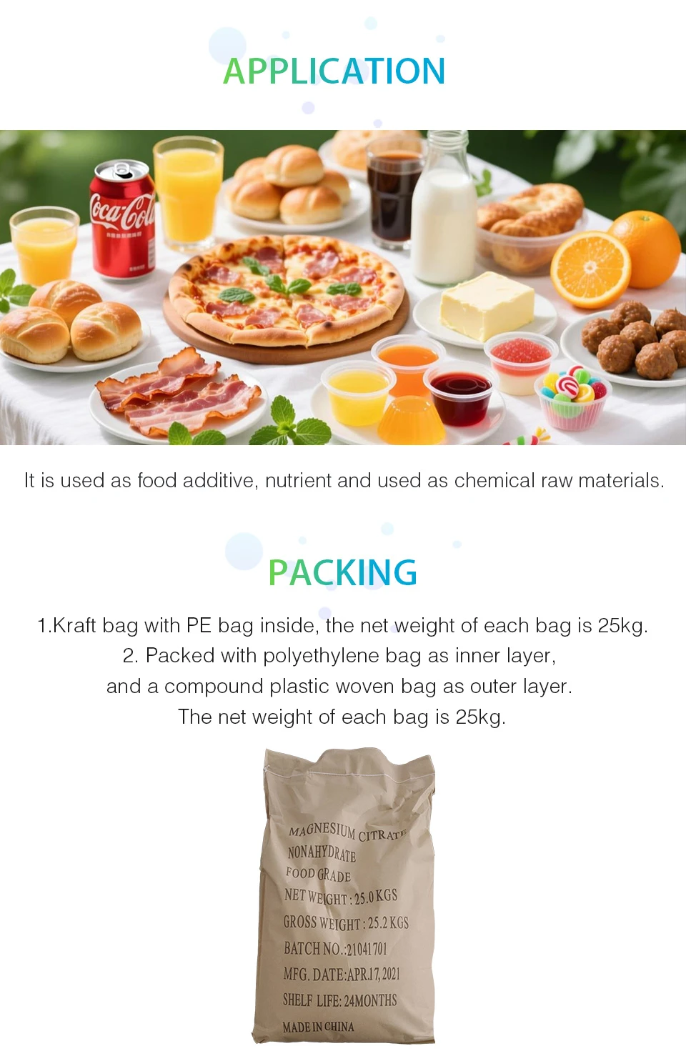 1. It is used as food additive, nutrient, saline laxative.