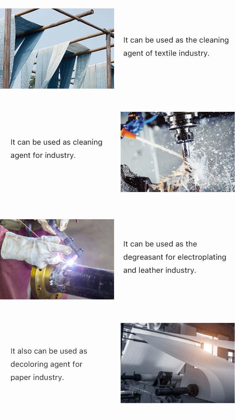 использование :LABSA используется в качестве сырья для производства различных моющих и песочных эмульгаторов, таких как стиральный порошок и моющее средство для посуды в повседневной химической промышленности, чистящее средство в текстильной промышленности, вспомогательное красящее средство, обезжиривающее средство в гальванической промышленности и кожевенной промышленности, а также для удаления краски. агент в бумажной промышленности.
